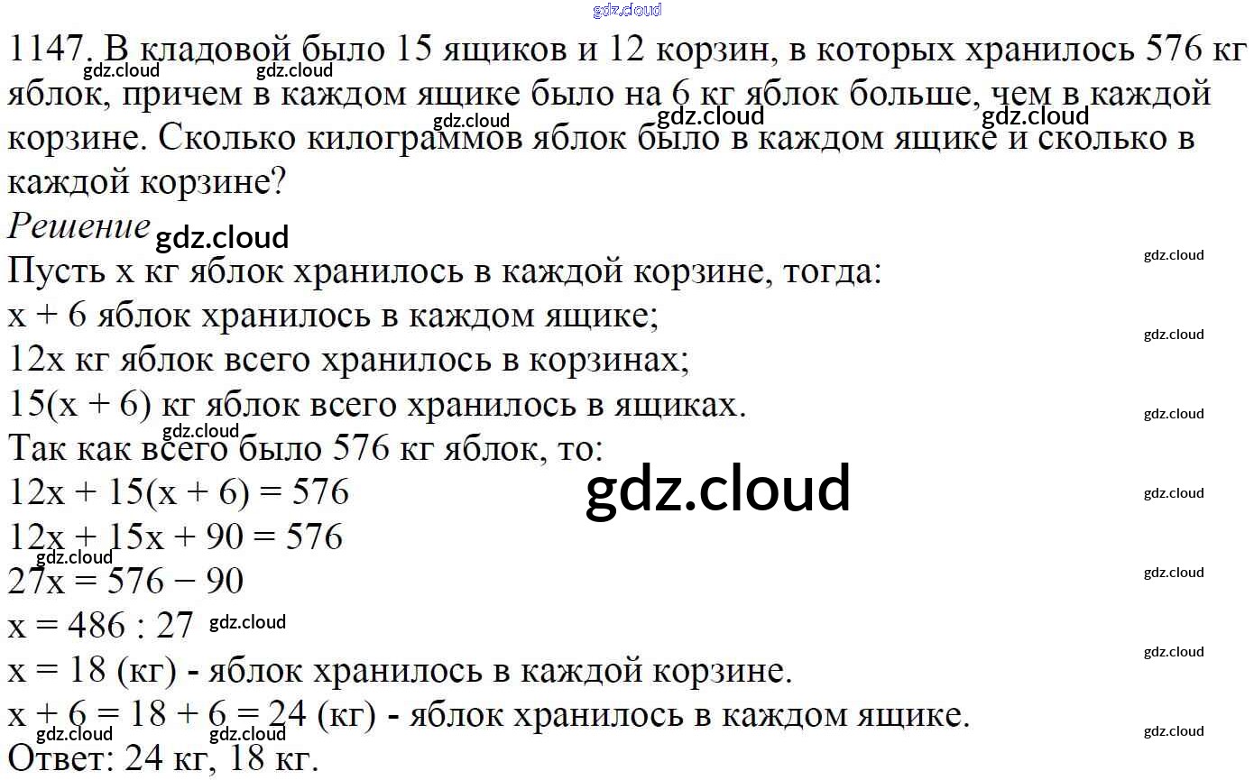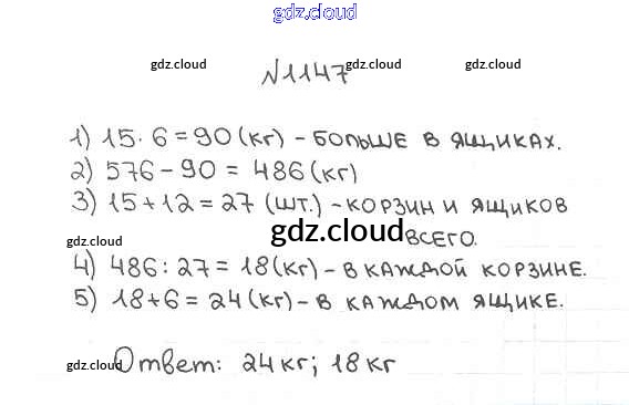 Ответ на задание 1147 Учебник Математика за 5 (пятый) класс Мерзляк, Полонский, Якир Алгоритм успеха 2016