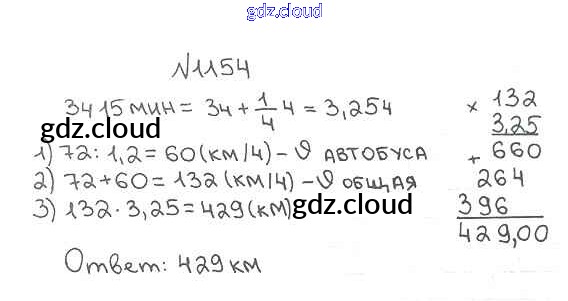 Ответ на задание 1154 Учебник Математика за 5 (пятый) класс Мерзляк, Полонский, Якир Алгоритм успеха 2016