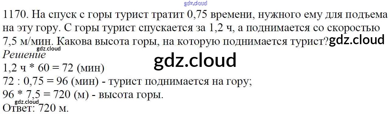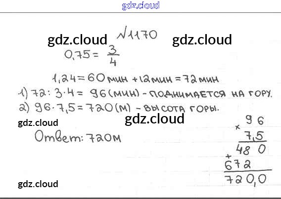 Ответ на задание 1170 Учебник Математика за 5 (пятый) класс Мерзляк, Полонский, Якир Алгоритм успеха 2016