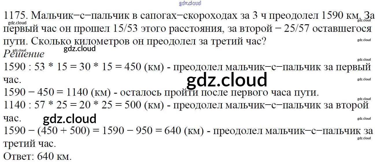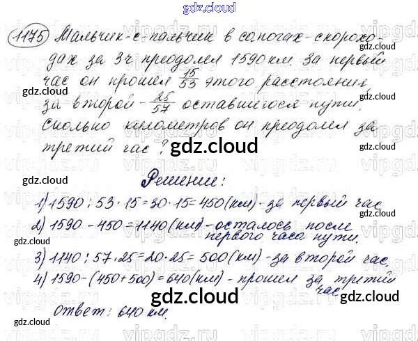 Ответ на задание 1175 Учебник Математика за 5 (пятый) класс Мерзляк, Полонский, Якир Алгоритм успеха 2016