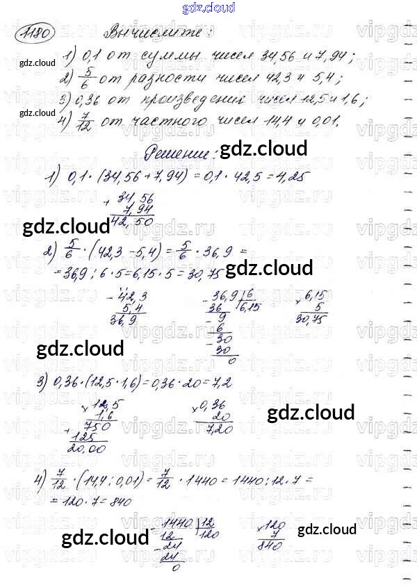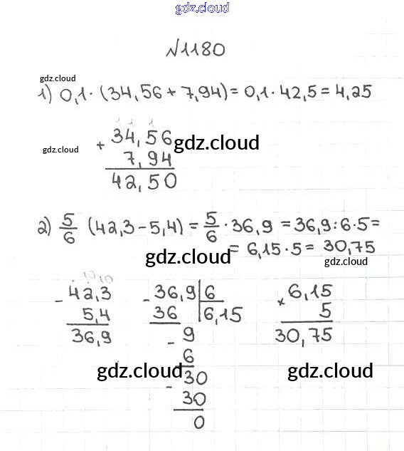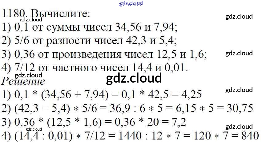 Ответ на задание 1180 Учебник Математика за 5 (пятый) класс Мерзляк, Полонский, Якир Алгоритм успеха 2016