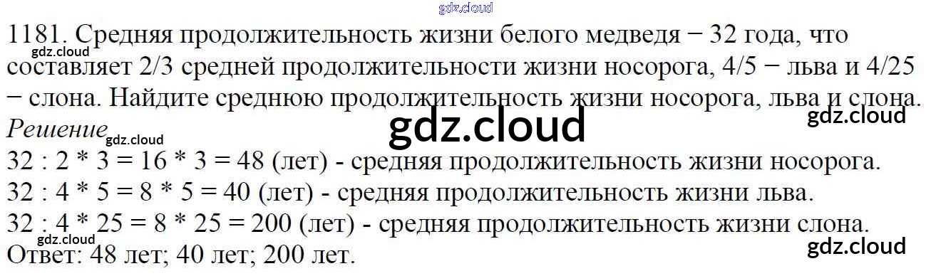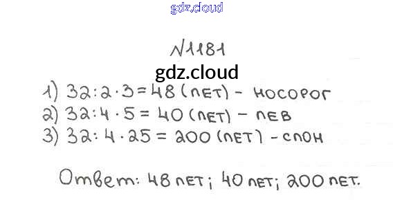 Ответ на задание 1181 Учебник Математика за 5 (пятый) класс Мерзляк, Полонский, Якир Алгоритм успеха 2016