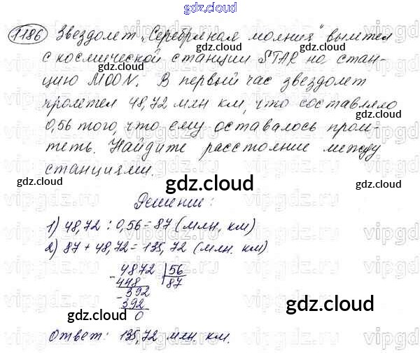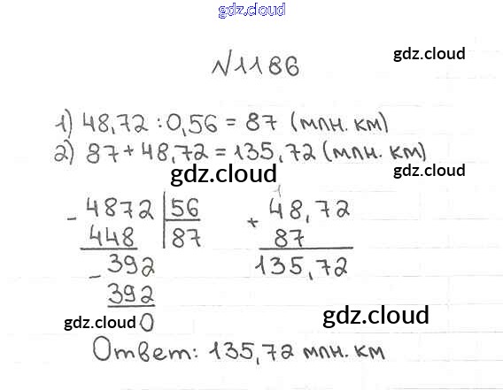 Ответ на задание 1186 Учебник Математика за 5 (пятый) класс Мерзляк, Полонский, Якир Алгоритм успеха 2016