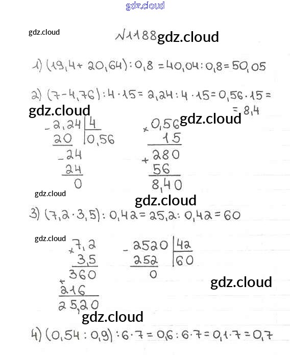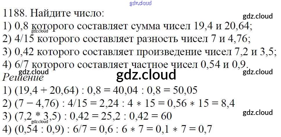 Ответ на задание 1188 Учебник Математика за 5 (пятый) класс Мерзляк, Полонский, Якир Алгоритм успеха 2016
