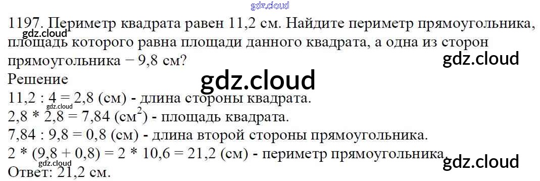 Ответ на задание 1197 Учебник Математика за 5 (пятый) класс Мерзляк, Полонский, Якир Алгоритм успеха 2016