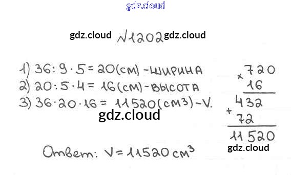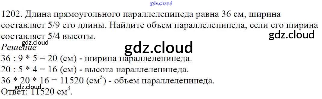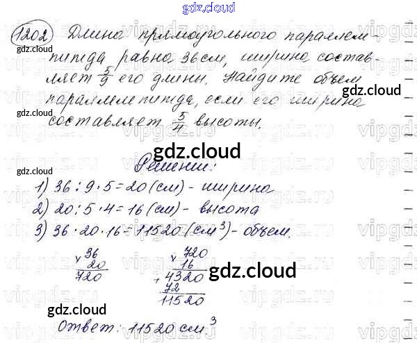 Ответ на задание 1202 Учебник Математика за 5 (пятый) класс Мерзляк, Полонский, Якир Алгоритм успеха 2016