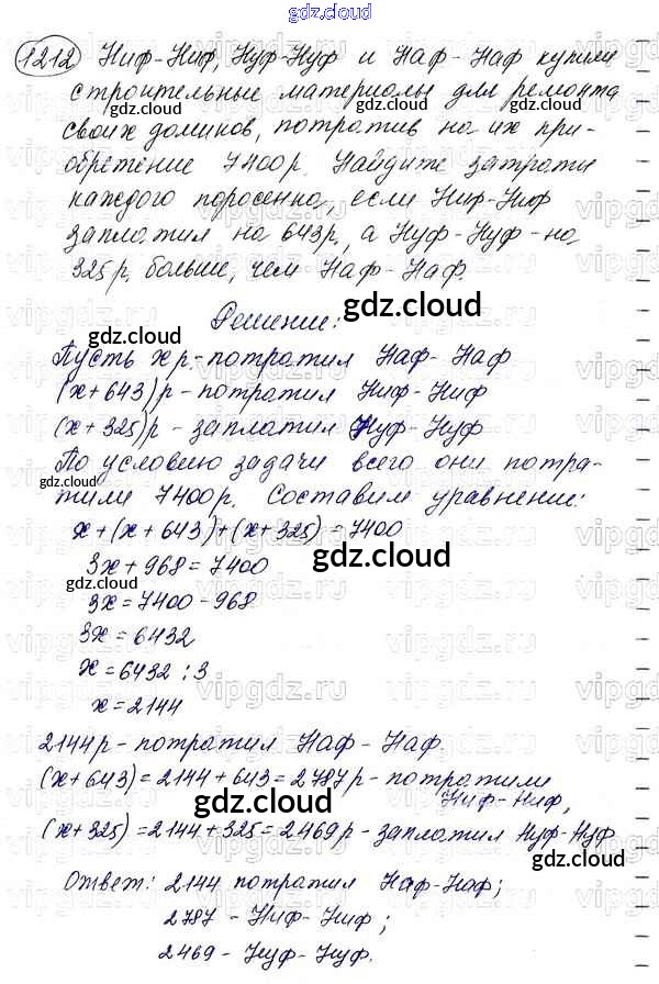 Ответ на задание 1212 Учебник Математика за 5 (пятый) класс Мерзляк, Полонский, Якир Алгоритм успеха 2016