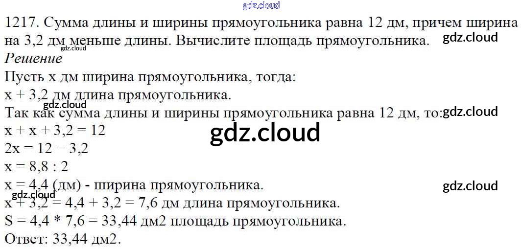 Ответ на задание 1217 Учебник Математика за 5 (пятый) класс Мерзляк, Полонский, Якир Алгоритм успеха 2016