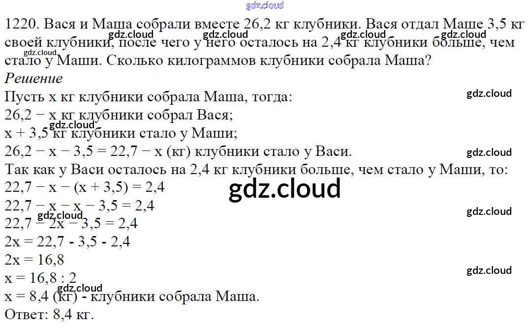 Ответ на задание 1220 Учебник Математика за 5 (пятый) класс Мерзляк, Полонский, Якир Алгоритм успеха 2016