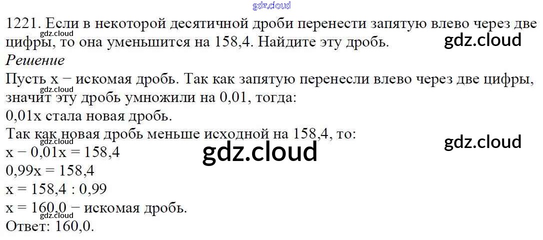 Ответ на задание 1221 Учебник Математика за 5 (пятый) класс Мерзляк, Полонский, Якир Алгоритм успеха 2016