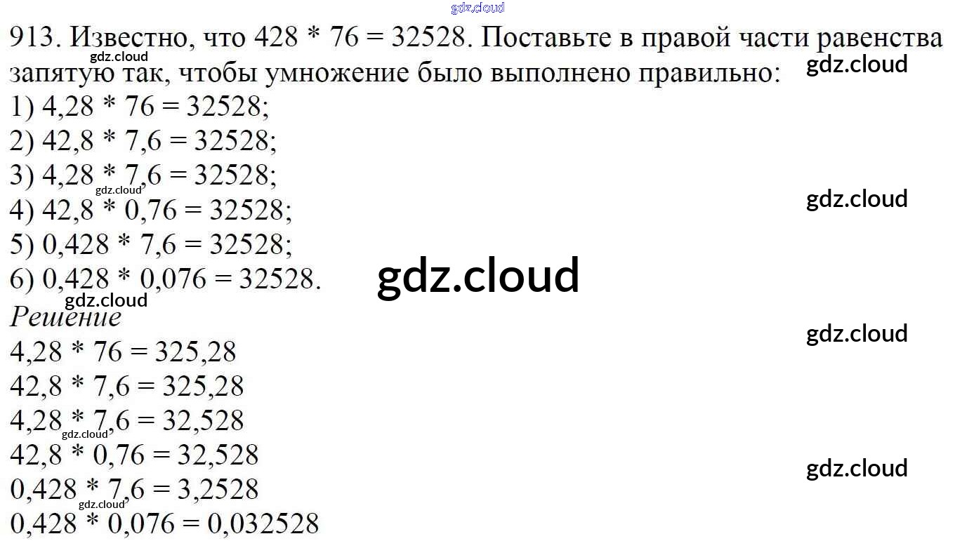 Ответ на задание 913 Учебник Математика за 5 (пятый) класс Мерзляк, Полонский, Якир Алгоритм успеха 2016