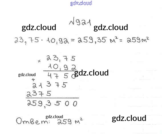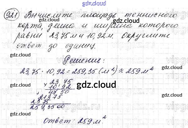 Ответ на задание 921 Учебник Математика за 5 (пятый) класс Мерзляк, Полонский, Якир Алгоритм успеха 2016