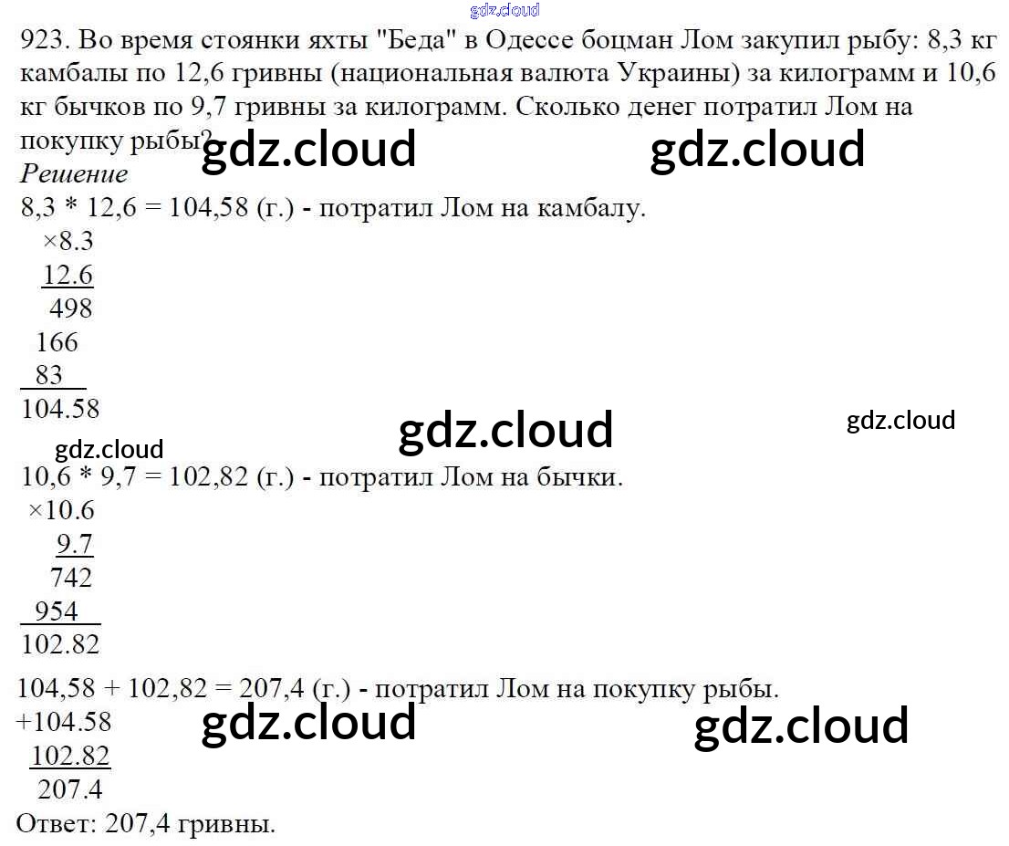 Ответ на задание 923 Учебник Математика за 5 (пятый) класс Мерзляк, Полонский, Якир Алгоритм успеха 2016