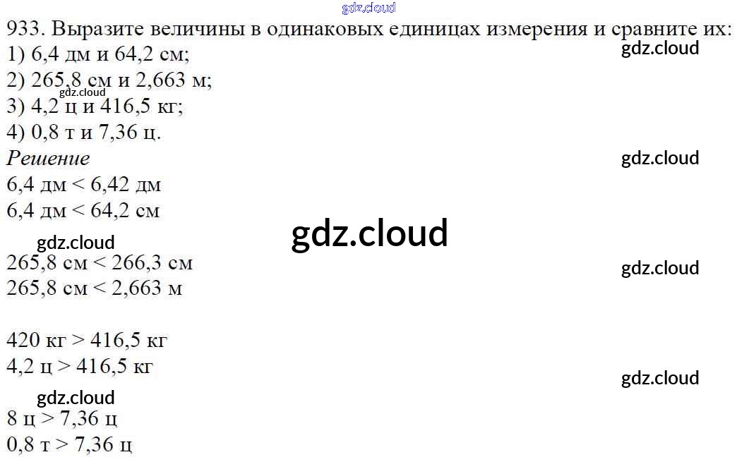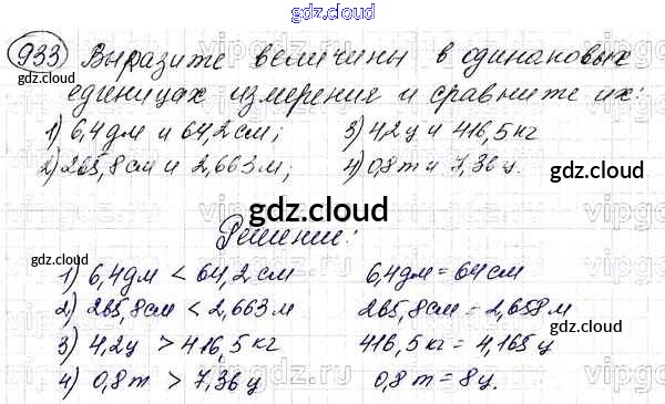 Ответ на задание 933 Учебник Математика за 5 (пятый) класс Мерзляк, Полонский, Якир Алгоритм успеха 2016