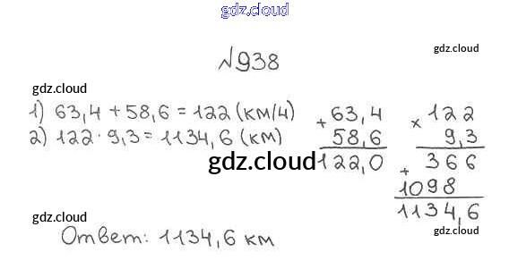 Ответ на задание 938 Учебник Математика за 5 (пятый) класс Мерзляк, Полонский, Якир Алгоритм успеха 2016