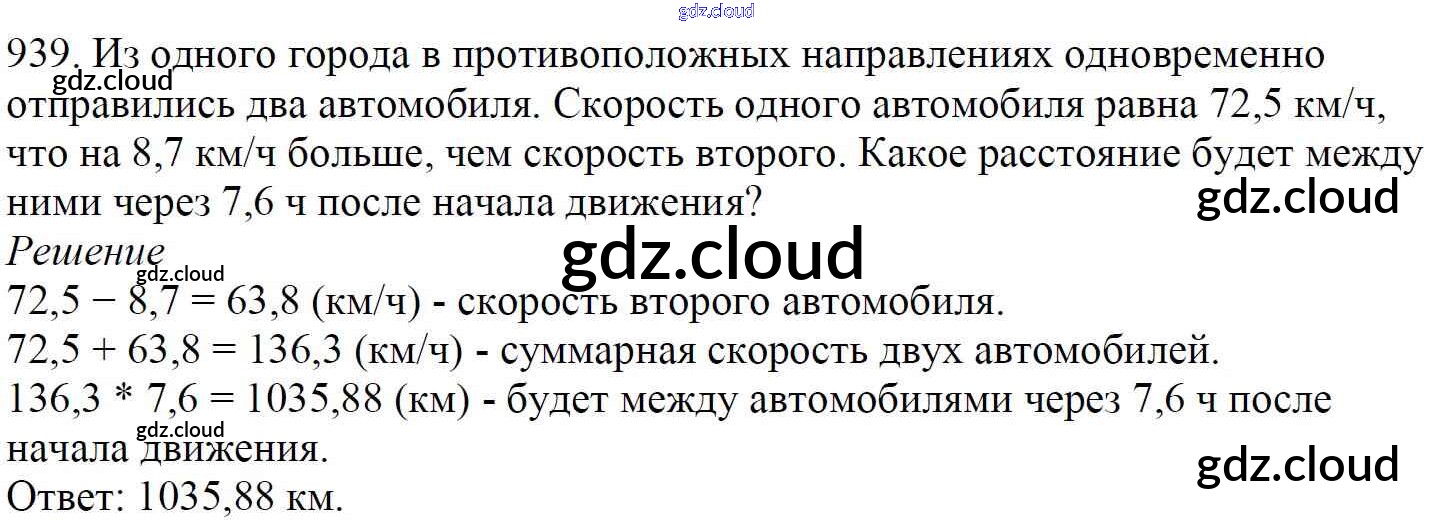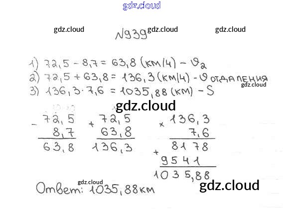 Ответ на задание 939 Учебник Математика за 5 (пятый) класс Мерзляк, Полонский, Якир Алгоритм успеха 2016