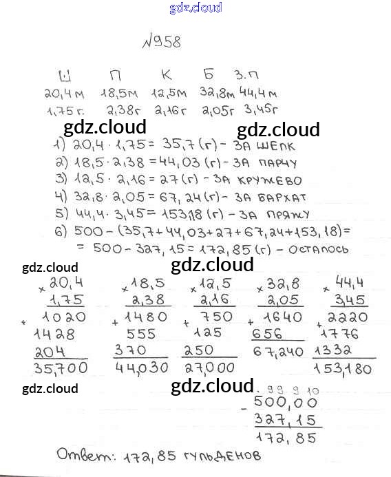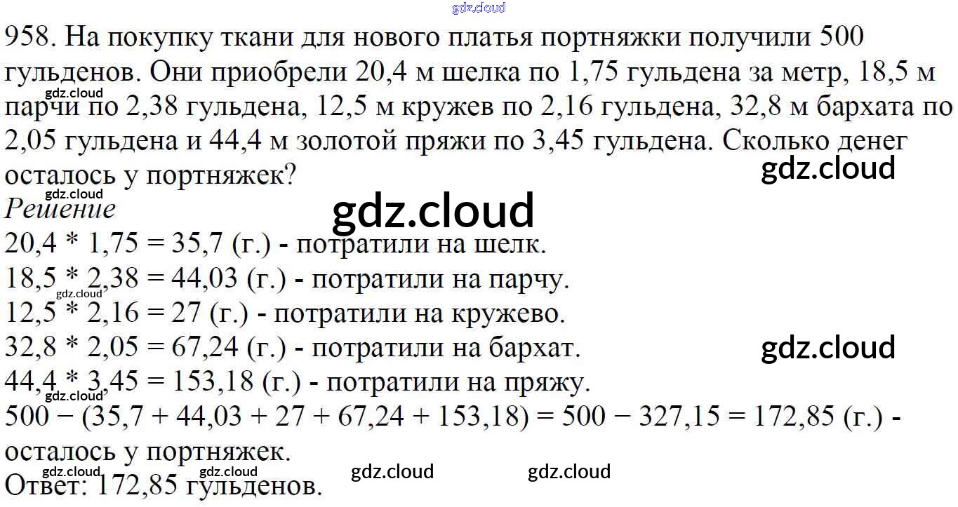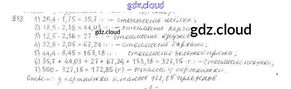 Ответ на задание 958 Учебник Математика за 5 (пятый) класс Мерзляк, Полонский, Якир Алгоритм успеха 2016