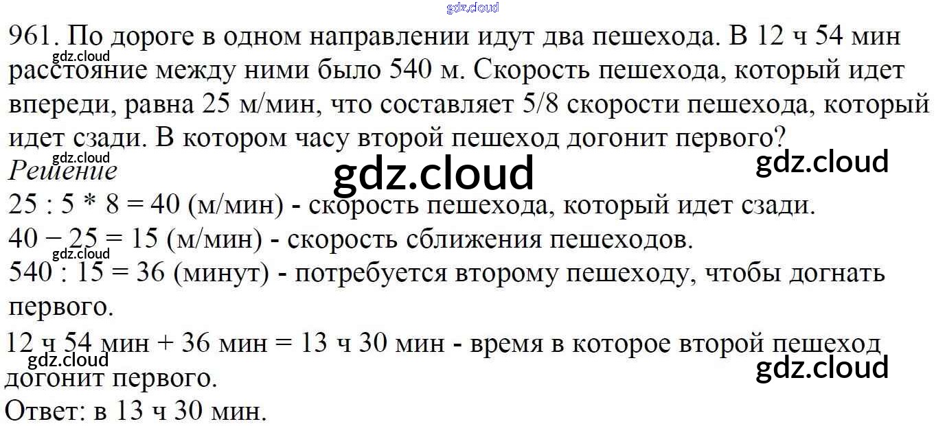 Ответ на задание 961 Учебник Математика за 5 (пятый) класс Мерзляк, Полонский, Якир Алгоритм успеха 2016