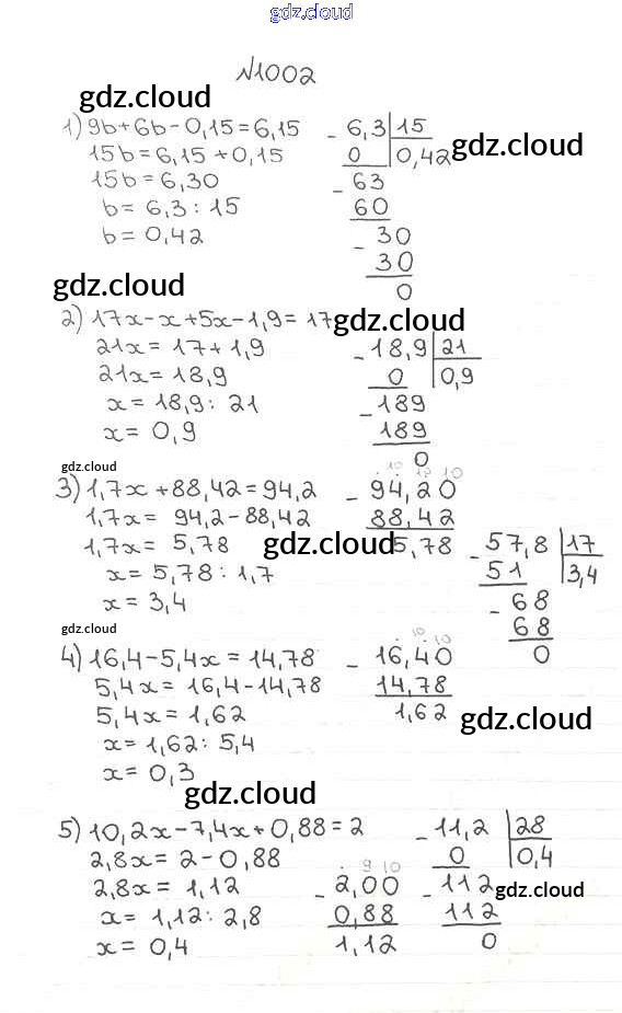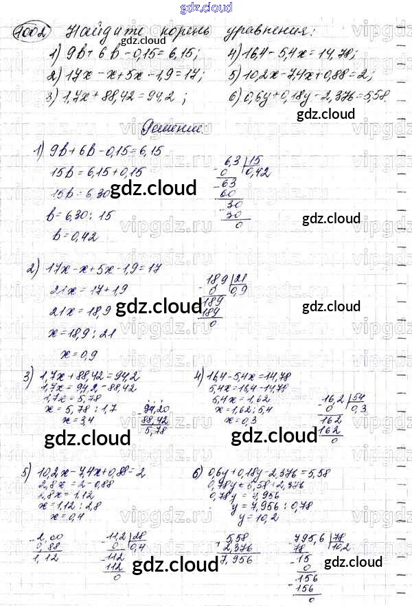 Ответ на задание 1002 Учебник Математика за 5 (пятый) класс Мерзляк, Полонский, Якир Алгоритм успеха 2016