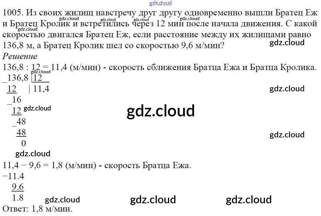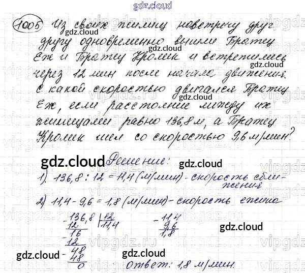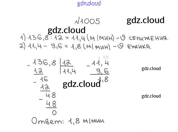 Ответ на задание 1005 Учебник Математика за 5 (пятый) класс Мерзляк, Полонский, Якир Алгоритм успеха 2016