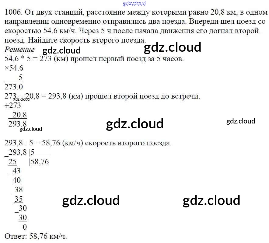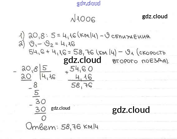 Ответ на задание 1006 Учебник Математика за 5 (пятый) класс Мерзляк, Полонский, Якир Алгоритм успеха 2016