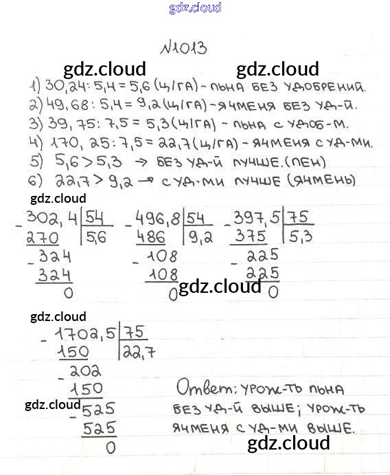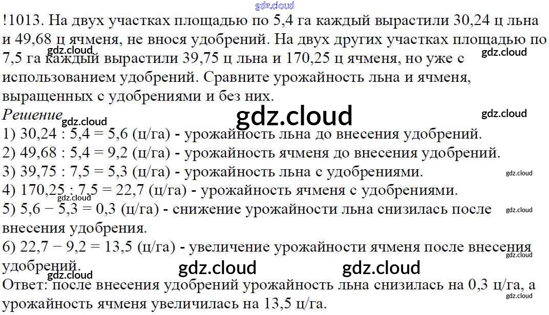 Ответ на задание 1013 Учебник Математика за 5 (пятый) класс Мерзляк, Полонский, Якир Алгоритм успеха 2016