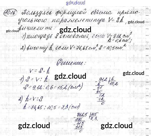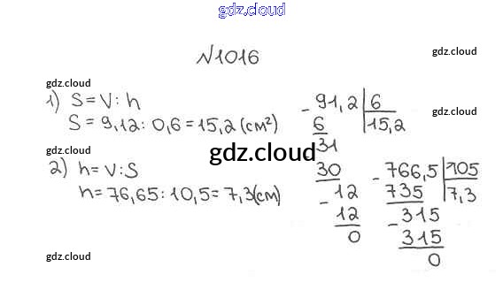 Ответ на задание 1016 Учебник Математика за 5 (пятый) класс Мерзляк, Полонский, Якир Алгоритм успеха 2016