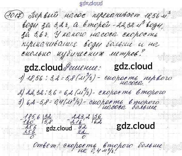 Ответ на задание 1017 Учебник Математика за 5 (пятый) класс Мерзляк, Полонский, Якир Алгоритм успеха 2016