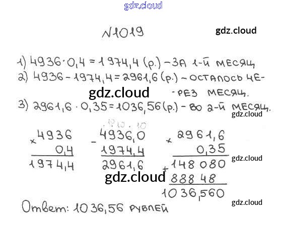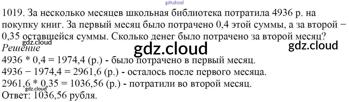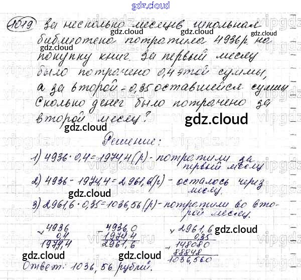 Ответ на задание 1019 Учебник Математика за 5 (пятый) класс Мерзляк, Полонский, Якир Алгоритм успеха 2016
