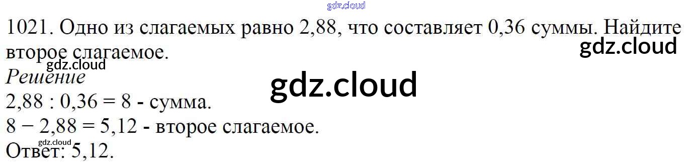Ответ на задание 1021 Учебник Математика за 5 (пятый) класс Мерзляк, Полонский, Якир Алгоритм успеха 2016