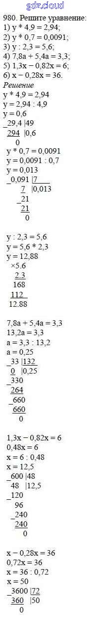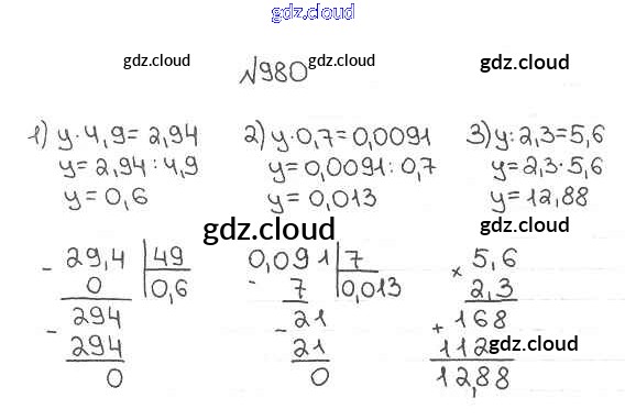 Ответ на задание 980 Учебник Математика за 5 (пятый) класс Мерзляк, Полонский, Якир Алгоритм успеха 2016