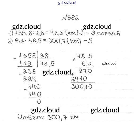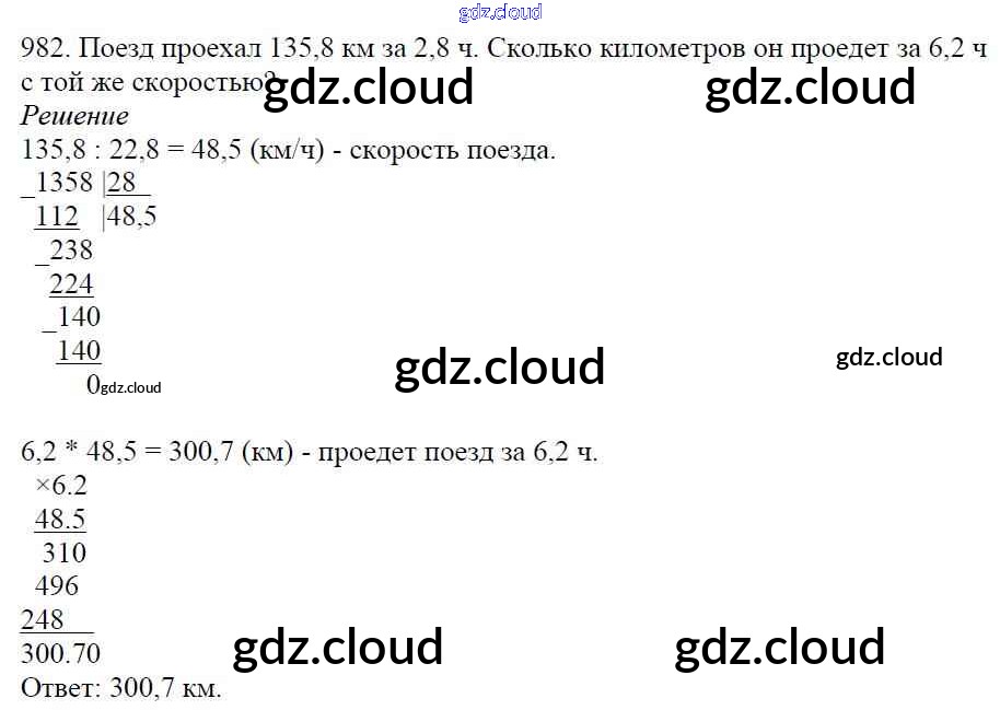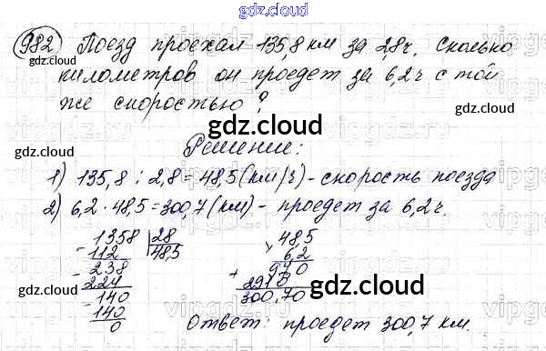 Ответ на задание 982 Учебник Математика за 5 (пятый) класс Мерзляк, Полонский, Якир Алгоритм успеха 2016