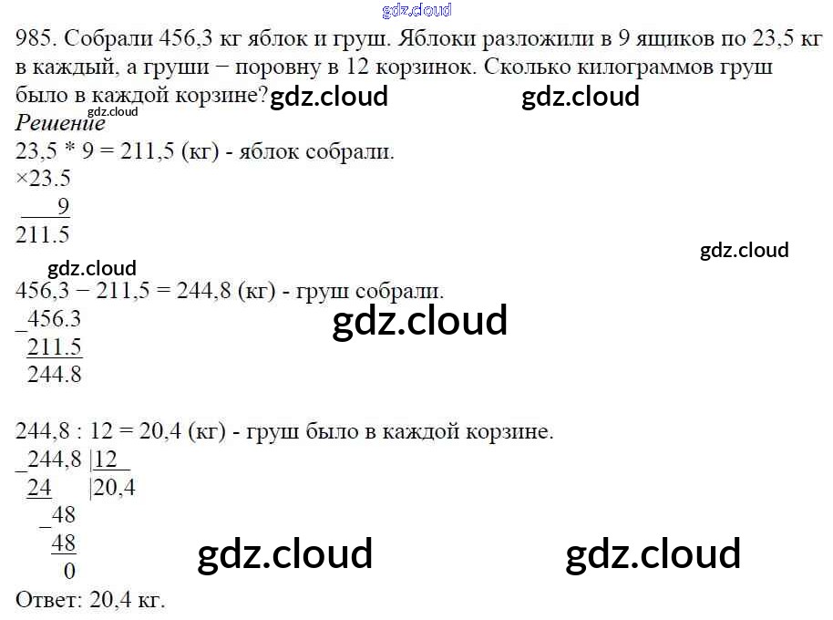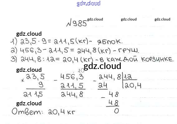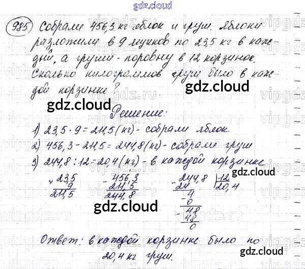 Ответ на задание 985 Учебник Математика за 5 (пятый) класс Мерзляк, Полонский, Якир Алгоритм успеха 2016
