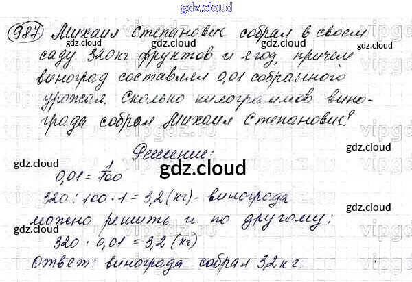 Ответ на задание 987 Учебник Математика за 5 (пятый) класс Мерзляк, Полонский, Якир Алгоритм успеха 2016