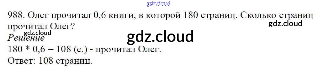 Ответ на задание 988 Учебник Математика за 5 (пятый) класс Мерзляк, Полонский, Якир Алгоритм успеха 2016