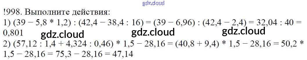 Ответ на задание 998 Учебник Математика за 5 (пятый) класс Мерзляк, Полонский, Якир Алгоритм успеха 2016