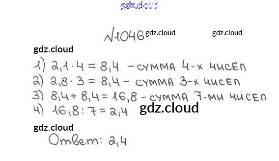 Ответ на задание 1046 Учебник Математика за 5 (пятый) класс Мерзляк, Полонский, Якир Алгоритм успеха 2016