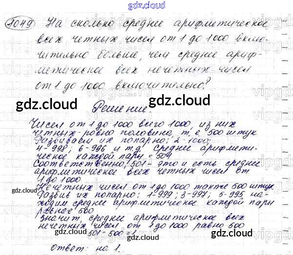 Ответ на задание 1049 Учебник Математика за 5 (пятый) класс Мерзляк, Полонский, Якир Алгоритм успеха 2016