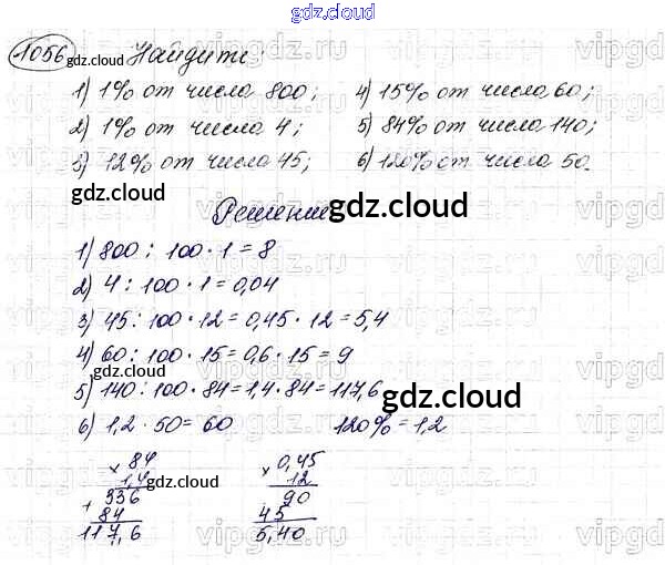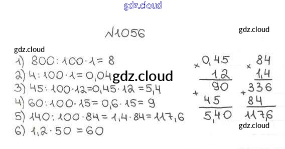 Ответ на задание 1056 Учебник Математика за 5 (пятый) класс Мерзляк, Полонский, Якир Алгоритм успеха 2016