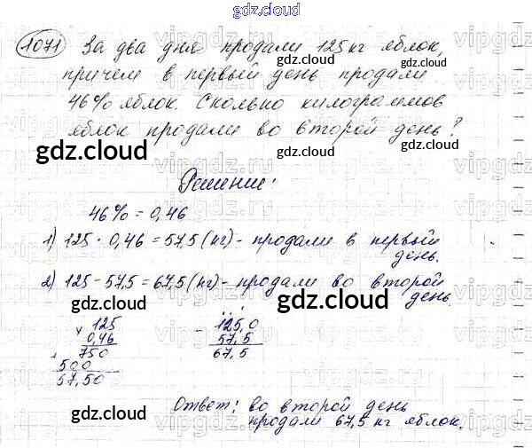 Ответ на задание 1071 Учебник Математика за 5 (пятый) класс Мерзляк, Полонский, Якир Алгоритм успеха 2016