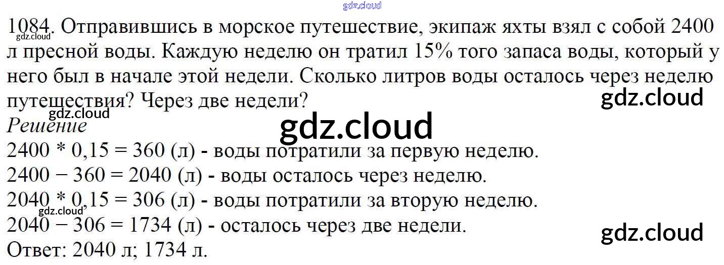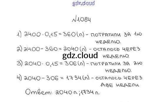 Ответ на задание 1084 Учебник Математика за 5 (пятый) класс Мерзляк, Полонский, Якир Алгоритм успеха 2016