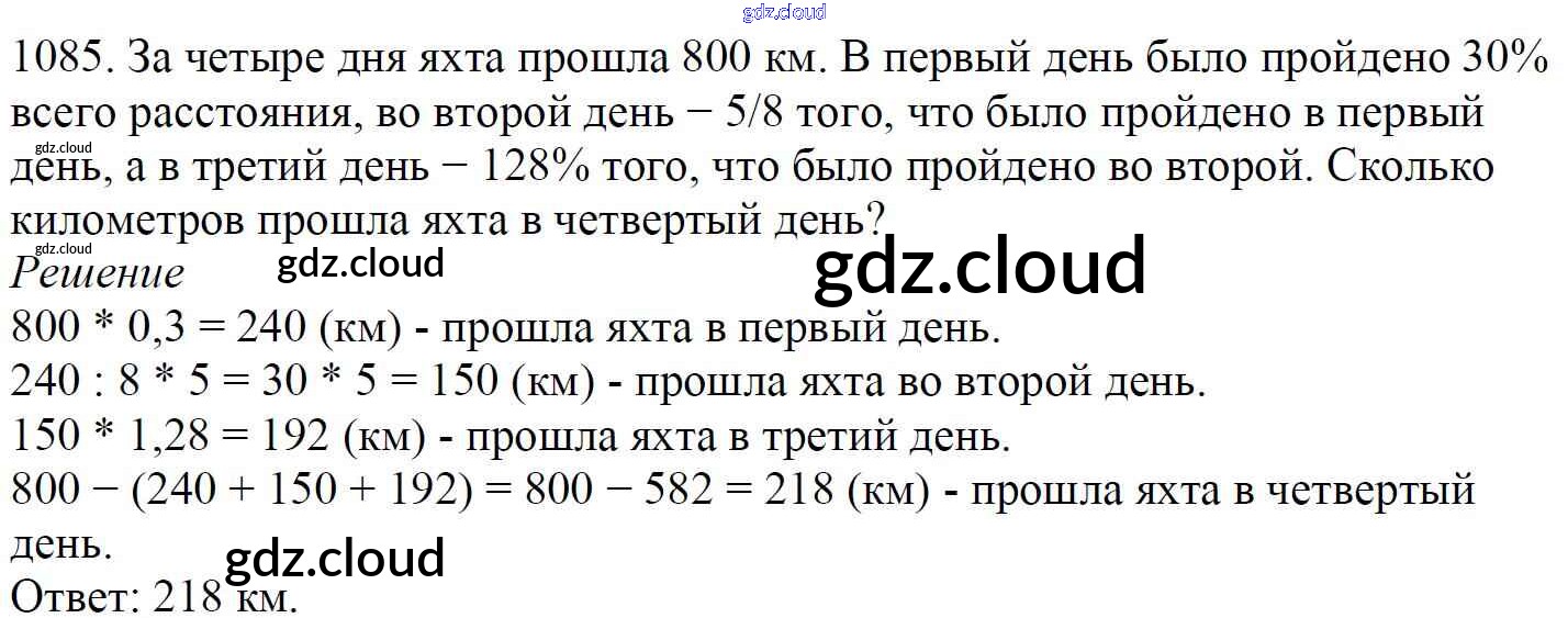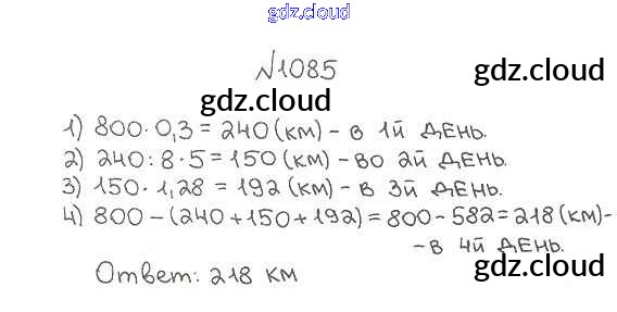 Ответ на задание 1085 Учебник Математика за 5 (пятый) класс Мерзляк, Полонский, Якир Алгоритм успеха 2016