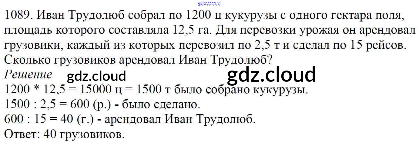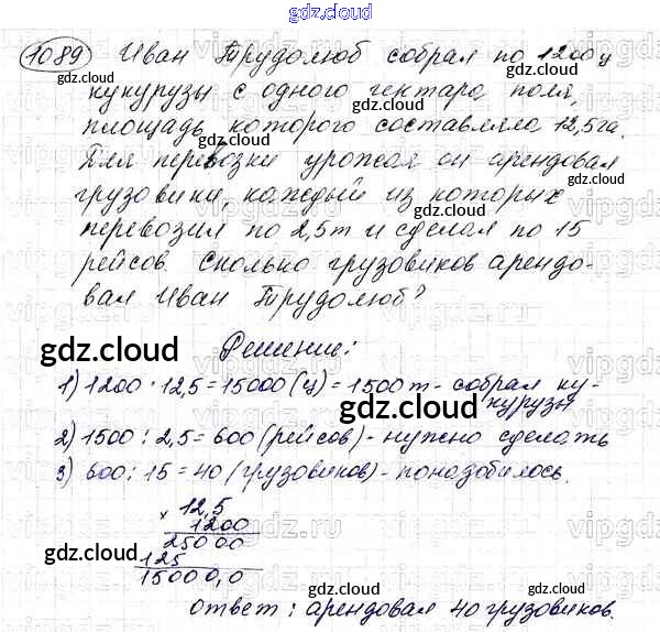 Ответ на задание 1089 Учебник Математика за 5 (пятый) класс Мерзляк, Полонский, Якир Алгоритм успеха 2016