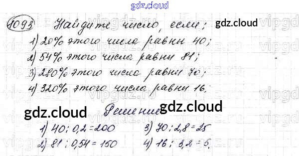 Ответ на задание 1093 Учебник Математика за 5 (пятый) класс Мерзляк, Полонский, Якир Алгоритм успеха 2016