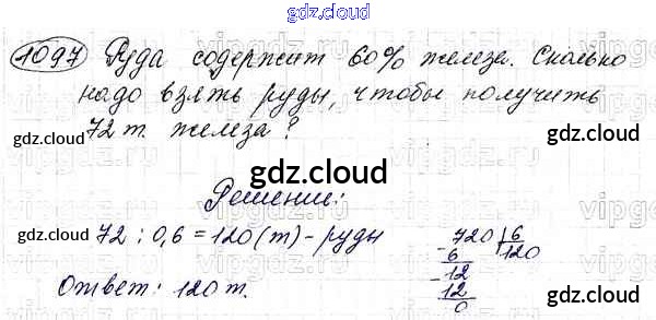 Ответ на задание 1097 Учебник Математика за 5 (пятый) класс Мерзляк, Полонский, Якир Алгоритм успеха 2016