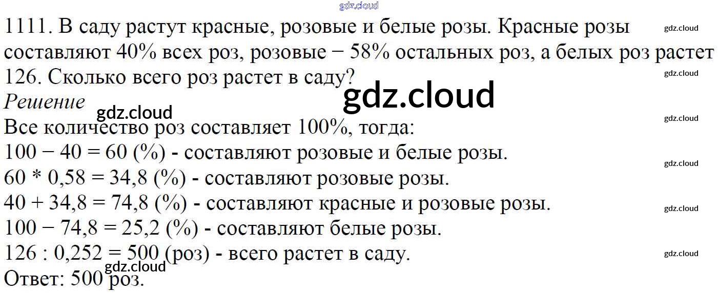 Ответ на задание 1111 Учебник Математика за 5 (пятый) класс Мерзляк, Полонский, Якир Алгоритм успеха 2016