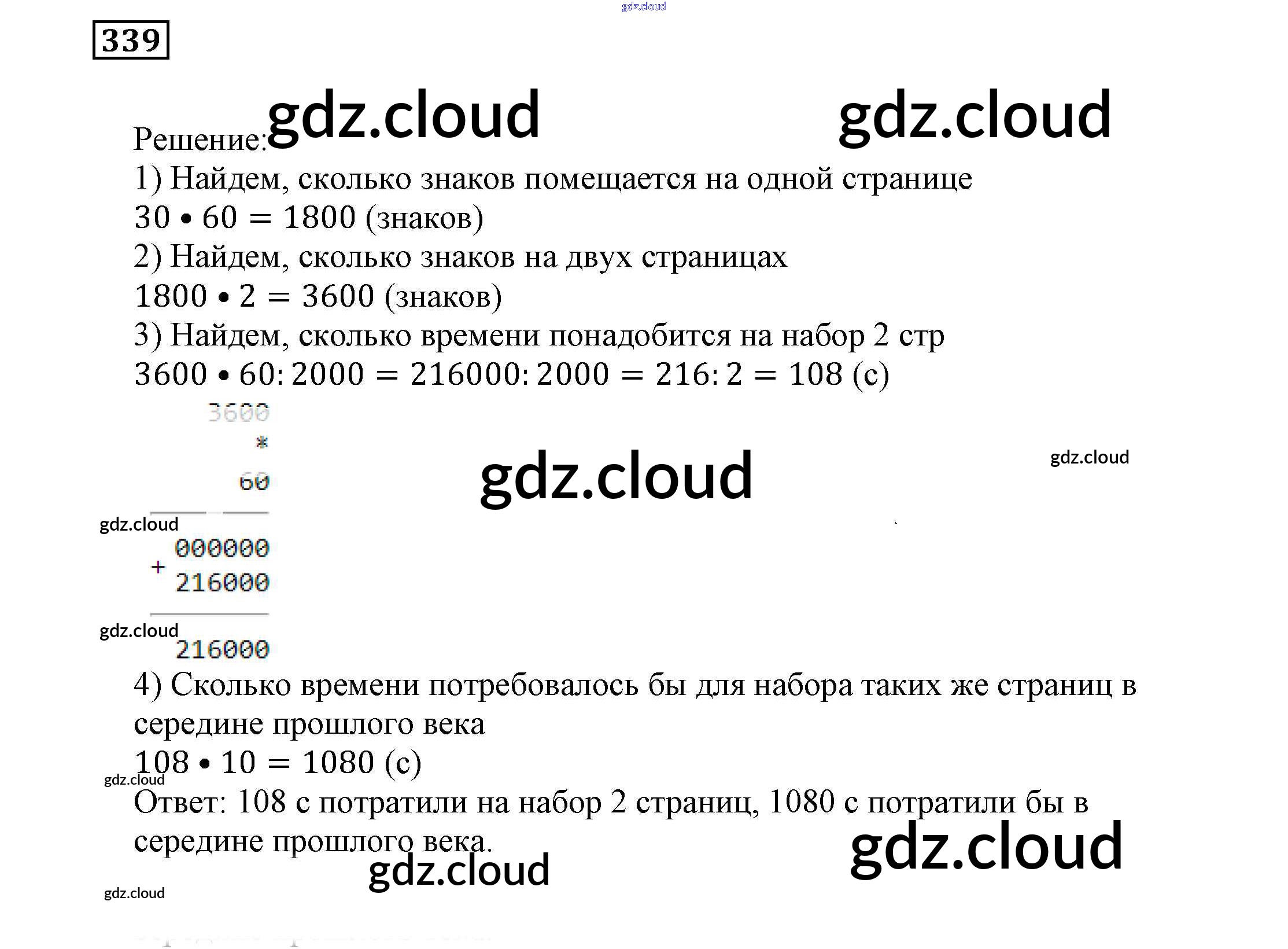 Ответ на задание 339 Учебник Математика за 5 (пятый) класс Муравин, Муравина 2016 ФГОС онлайн и без номера телефона.