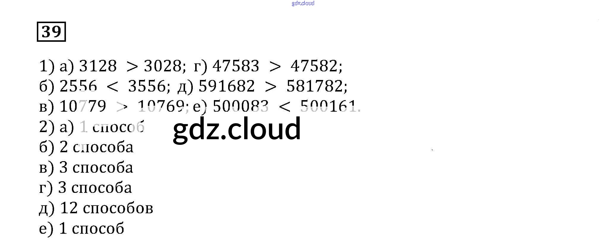 Ответ на задание 39 Учебник Математика за 5 (пятый) класс Муравин, Муравина 2016 ФГОС онлайн и без номера телефона.