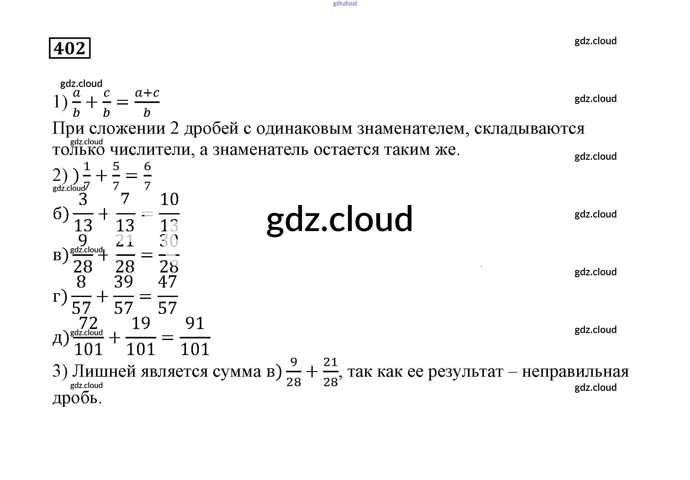 Ответ на задание 402 Учебник Математика за 5 (пятый) класс Муравин, Муравина 2016 ФГОС онлайн и без номера телефона.