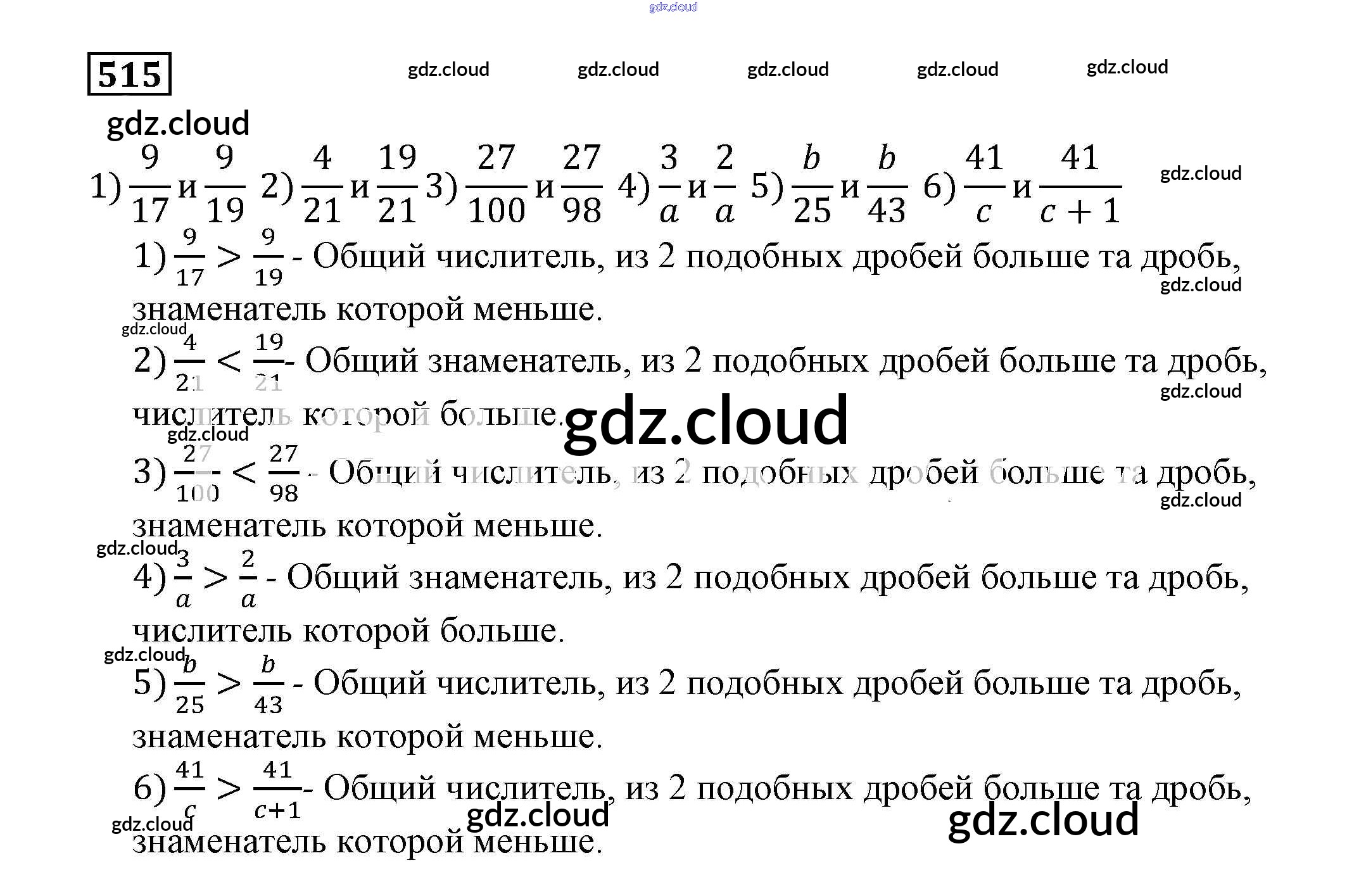 Ответ на задание 515 Учебник Математика за 5 (пятый) класс Муравин, Муравина 2016 ФГОС онлайн и без номера телефона.